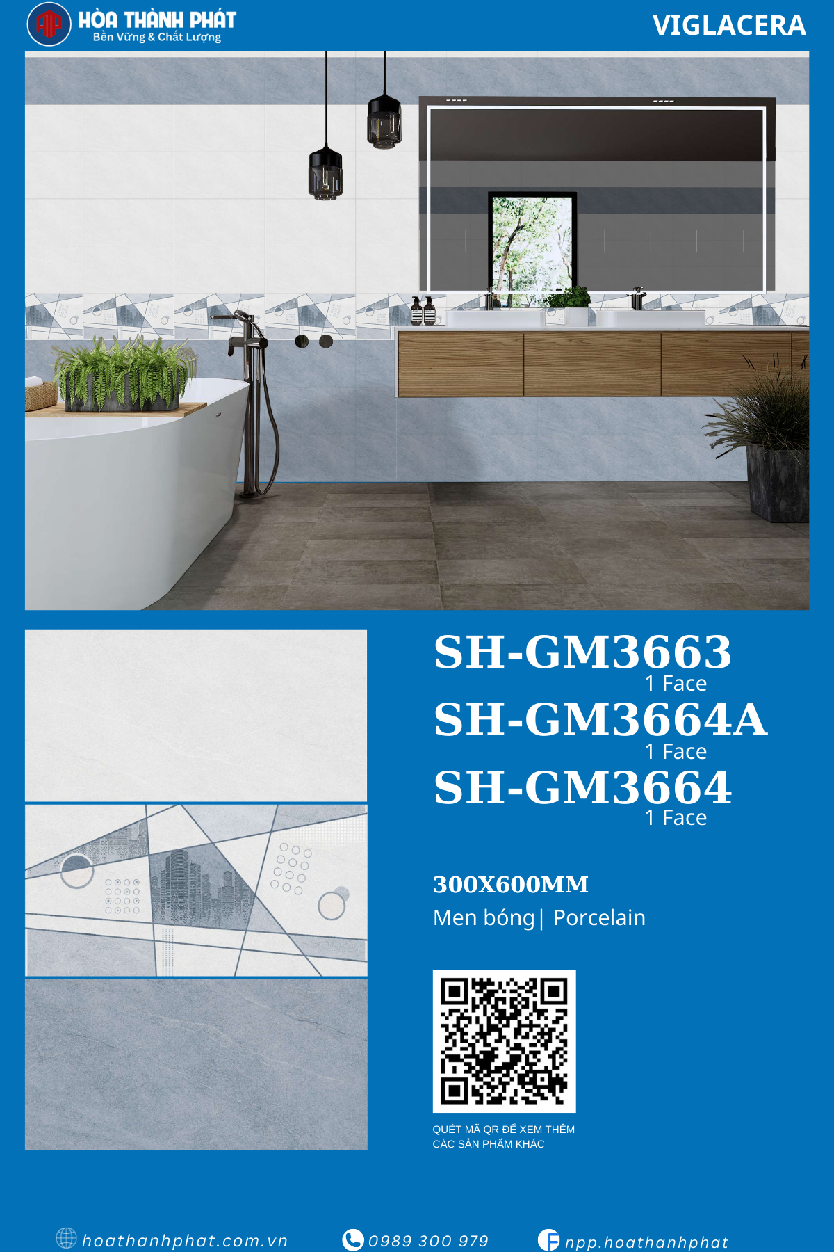 Gạch ốp lát SH-GP3664A, kích thước 30x60cm dễ dàng thi công ốp tường ở nhiều khu vực dù diện tích lớn hay nhỏ. Gạch do thương hiệu Viglacera - nổi tiếng hàng đầu tại Việt Nam sản xuất.
